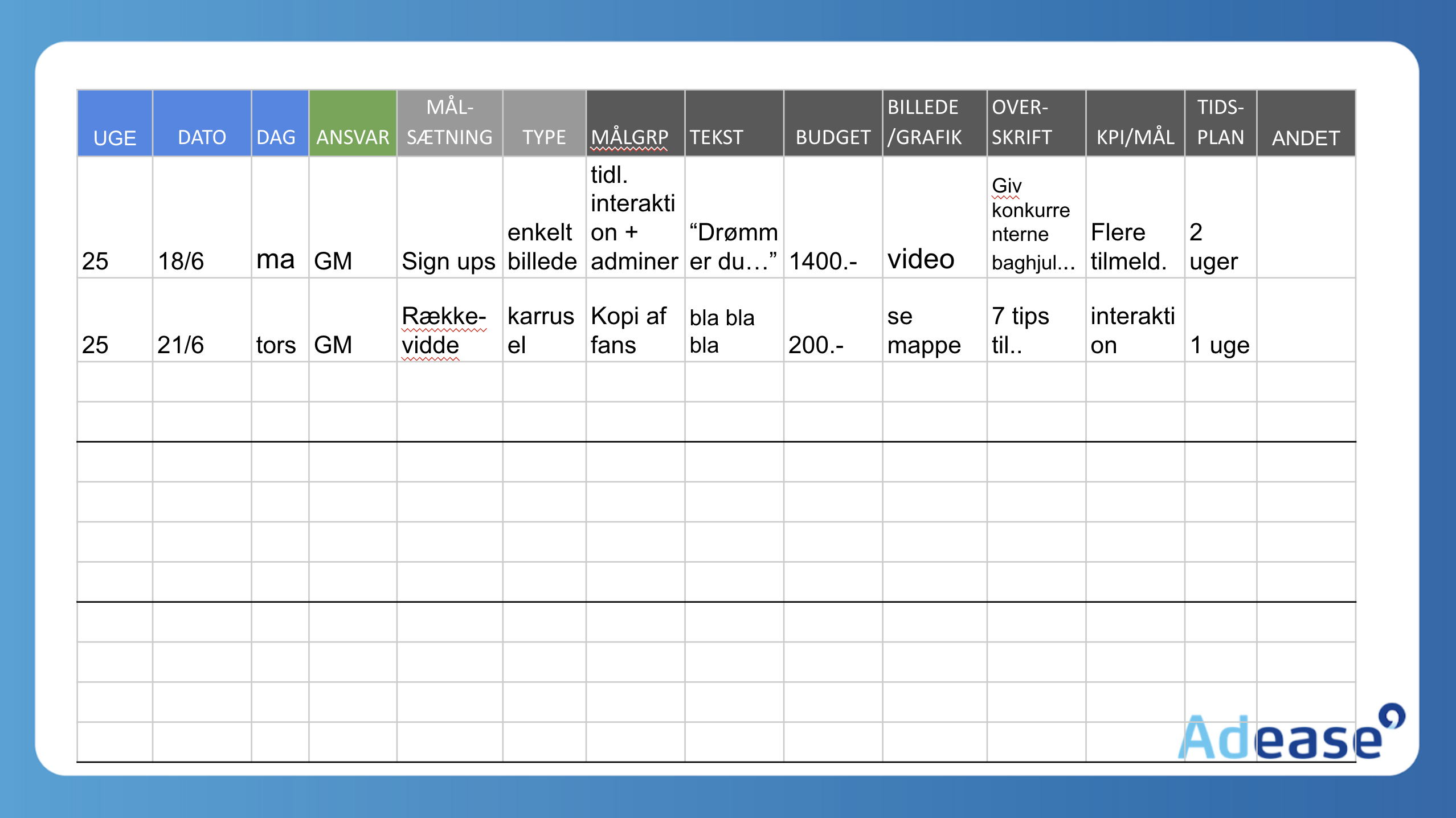 Skabeloner med mere
